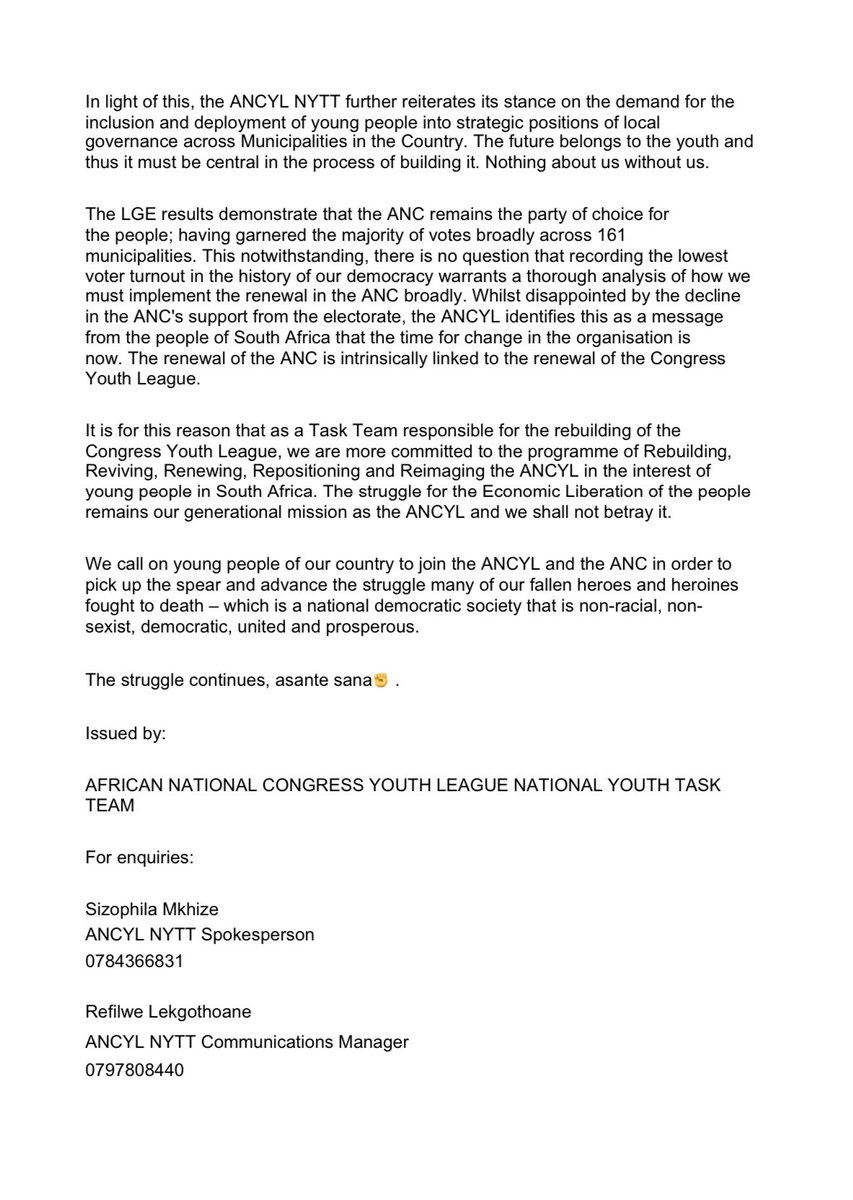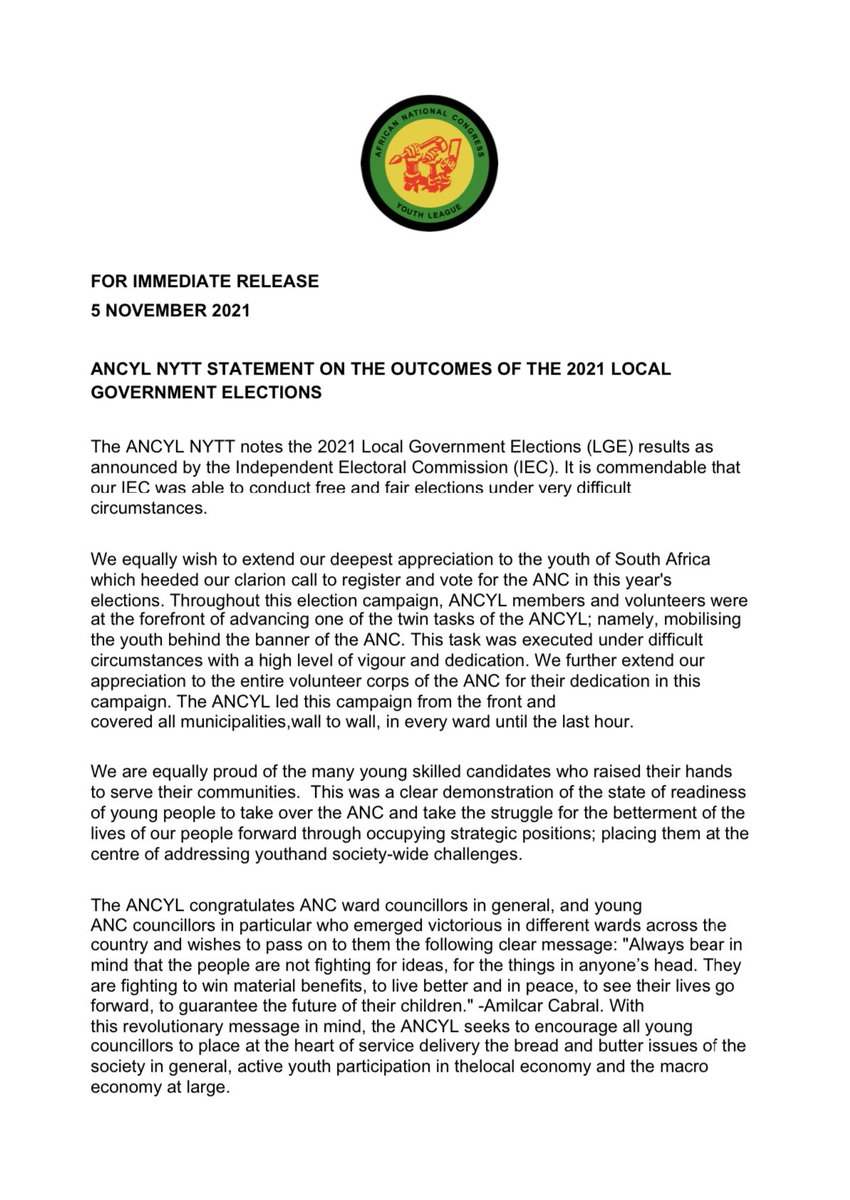 ANCYL NYTT STATEMENT ON THE OUTCOMES OF THE 2021 LOCAL GOVERNMENT ELECTIONS