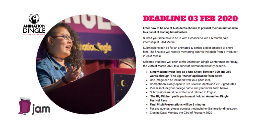 Don't forget CLOSING DATE for The Big Pitcher is coming close - Monday the 03 February 2020. Don't miss out on this great opportunity to further your animation career. http://2020.animationdingle.com/the-big-pitcher