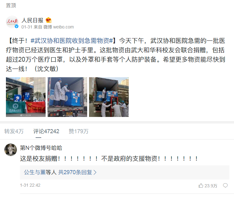 啧啧... 美国慈善机构的物资,由美国快递公司免费空运到广州... 最后变成了一个你国正能量报道... 当然了,华大妈可以说这是美国民间机构,不是”美国政府“。 btw, Direct Relief 2018财年发放医疗物资1697批,总值11.67亿美元,全年行政开支占比0.3%,筹款费用占比0.1%。 是的,你没看错小数点。 https://twitter.com/jiongnasen/status/1224289573095632897 …pic.twitter.com/eSW3SBgIPG