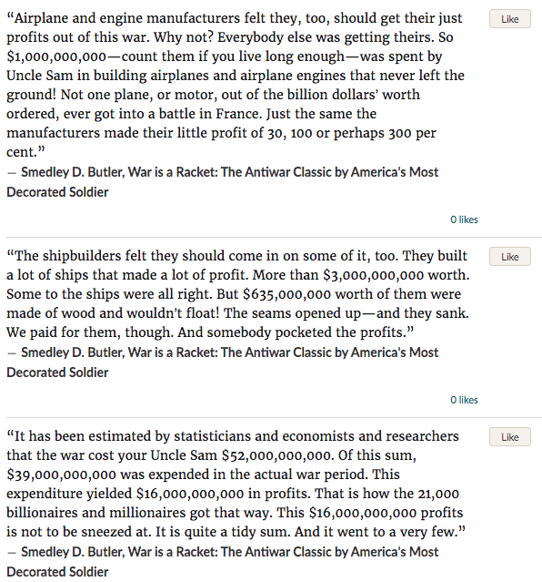 “WAR is a racket. It always has been. It is possibly the oldest, easily the most profitable, surely the most vicious. It is the only one international in scope. It is the only one in which the profits are reckoned in dollars and the losses in lives.” - Maj. Gen. Butlerpic.twitter.com/vYeRfuLzUx
