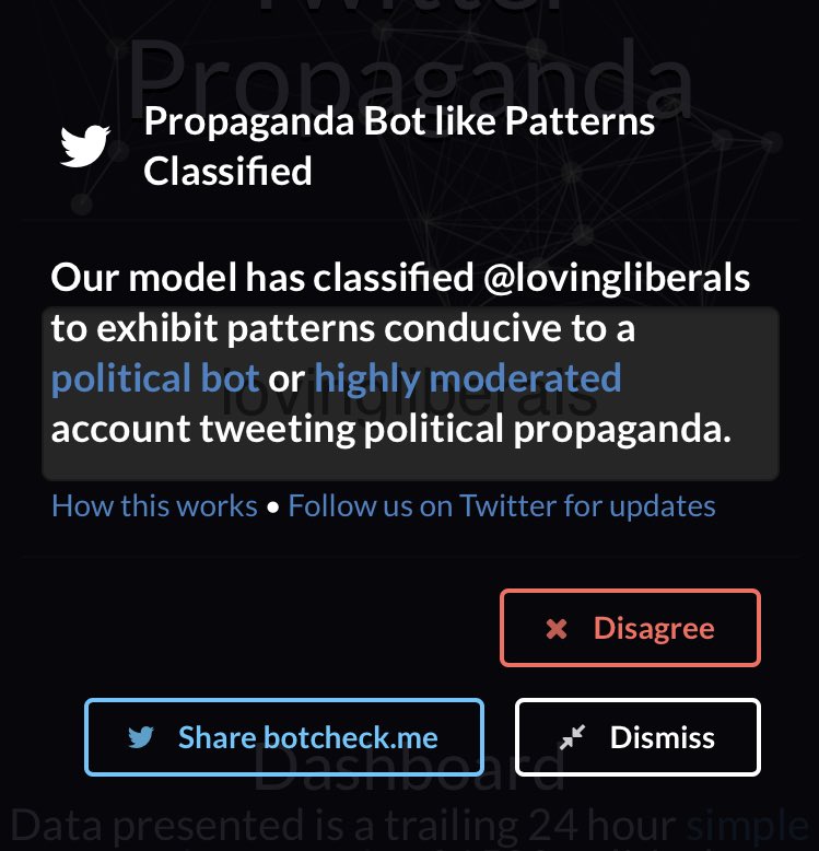 Here’s how it works https://medium.com/@robhat/identifying-propaganda-bots-on-twitter-5240e7cb81a9 … You don’t have to live like this. I’m sure you could spoof the activity.