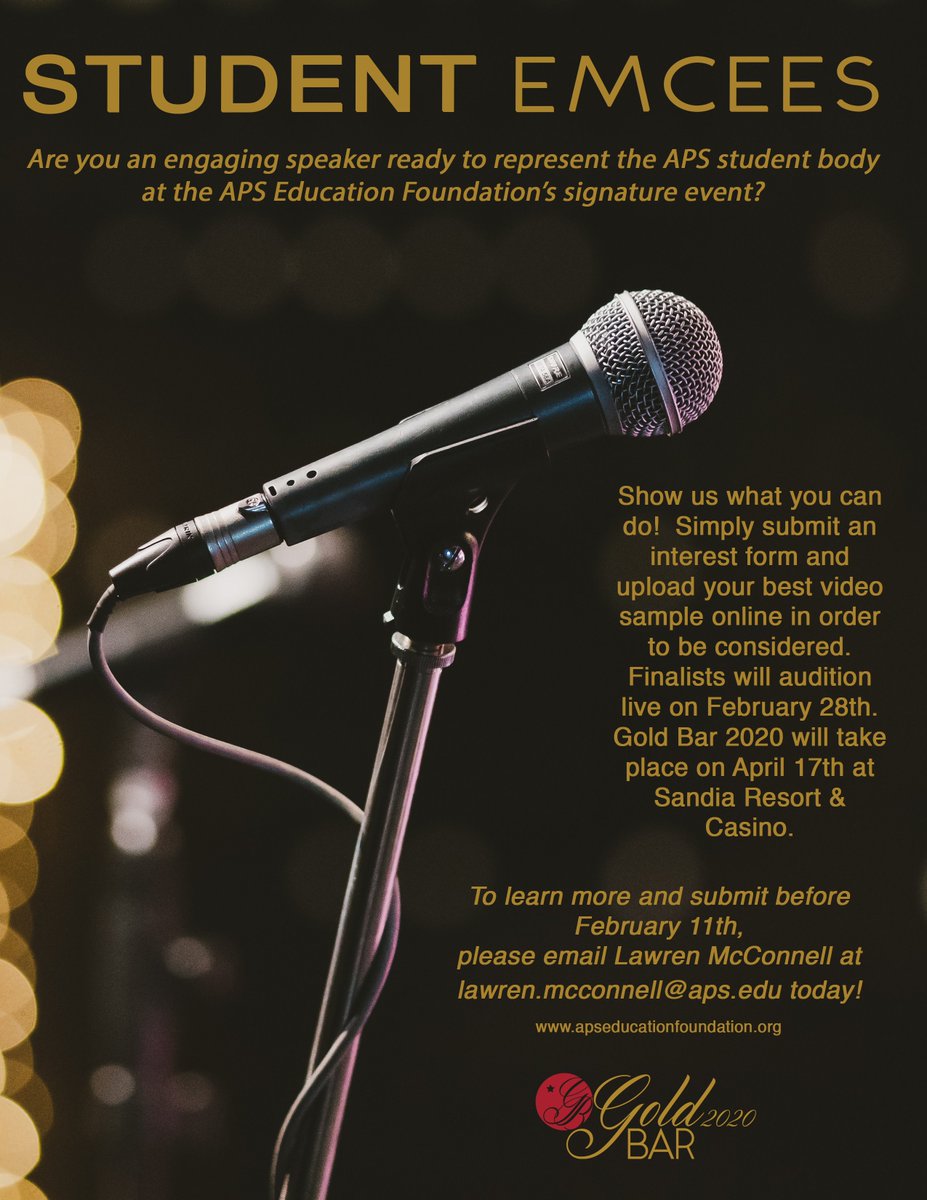 Calling on APS students who have the talent and would like to be the 2020 Emcee an event of 450 plus guests. The Gold Bar 2020 event is holding auditions - check it out!