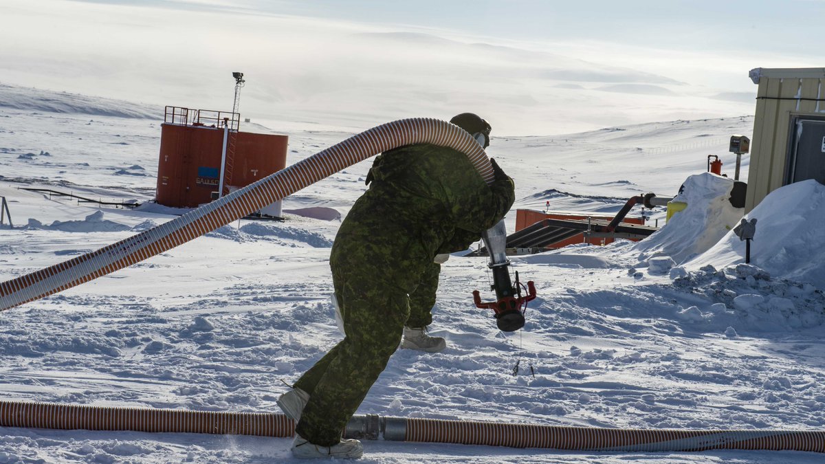 Regardez vers le Nord. Très au Nord! Récemment nous étions sur l'île Ellesmere, au Nunavut, à peine 817 kilomètres du pôle Nord! Nous avons approvisionné la SFC Alert en carburant afin qu'elle puisse être opérable toute l'année.