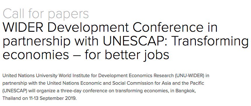 INFO: https://www.wider.unu.edu/opportunity/wider-development-conference-partnership-unescap-transforming-economies-%E2%80%93-better-jobs … pic.twitter.com/aLjG9oG6mW