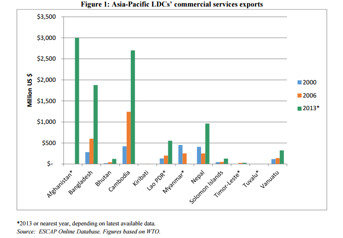 Services exports in #AsiaPacific #LDCs are growing. But better preferential access is needed. http://ow.ly/RRDah pic.twitter.com/ytBVfMD3gT