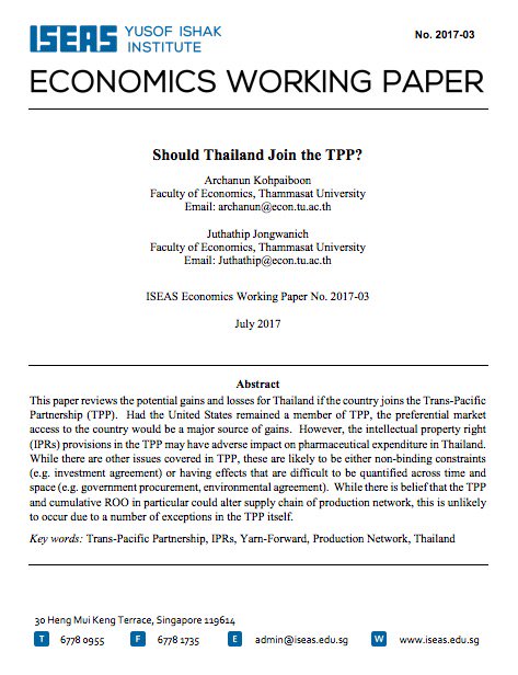 *Our member Thu* Should #Thailand Join the #TPP? IPRs provisions may impact on pharmaceutical expenditure? @ISEAS: http://ow.ly/ryoz30eAh24 pic.twitter.com/mMmGmJVvVl