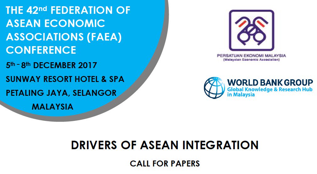 Call for papers: Drivers of #ASEAN #economic integration (5-8 Dec; Deadline: 15 Oct) Details: http://pem.org.my/FAEA_2017.php pic.twitter.com/Ib7Zuwk1mP