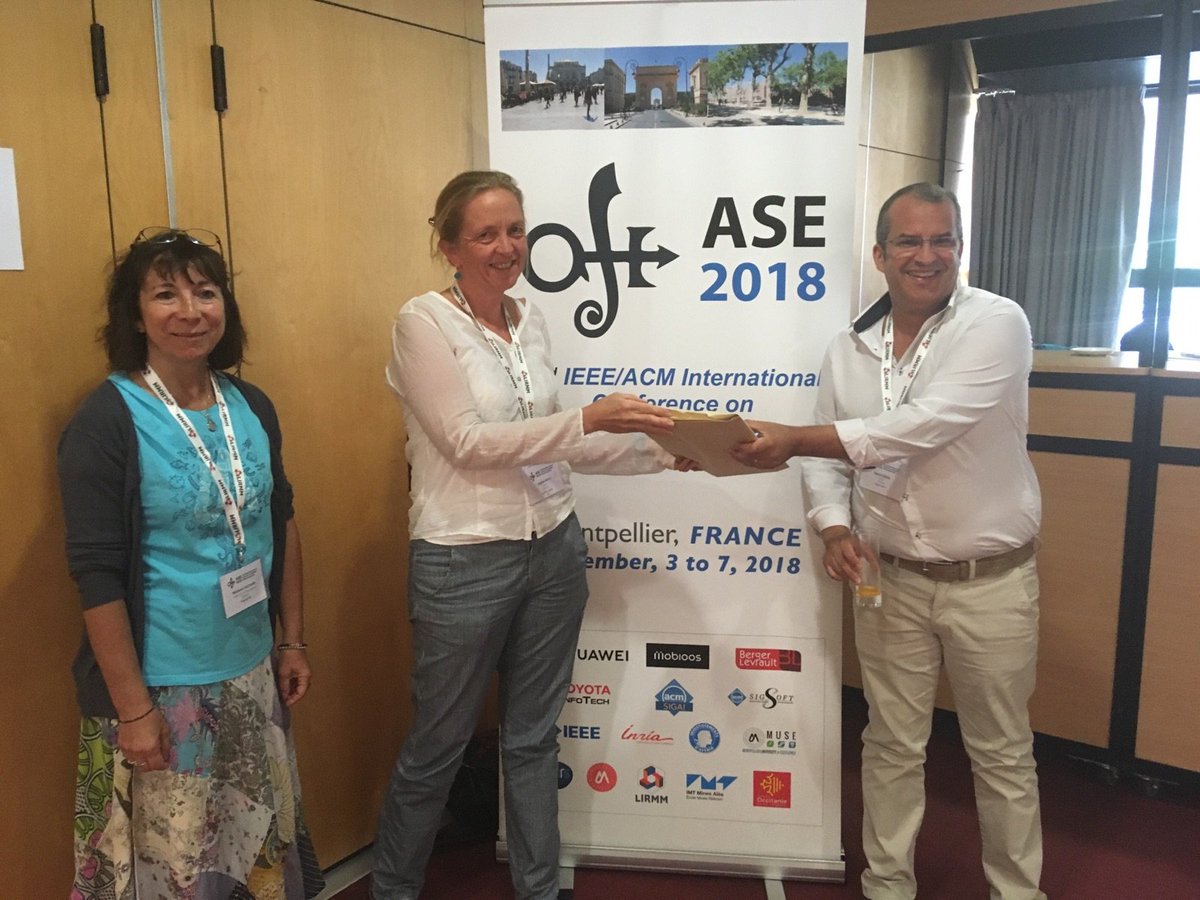 ASE 2018 is beginning! Let's thank Benoît Baudry for his doctoral symposium keynote, and Virginie Wiels and Djamel Seriai, the chairs of the doctoral symposium.pic.twitter.com/IKfAVh71lr