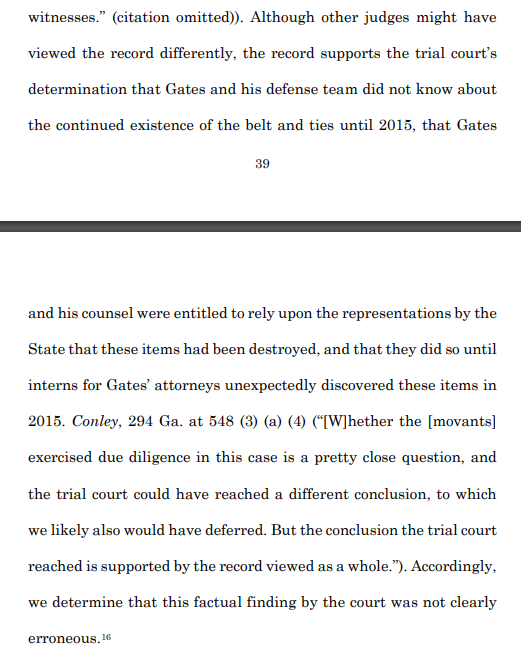 The State told the Defendant that the items had been destroyed. Then, when it took him 35 years to find the items, they say he failed to exercise sufficient diligence by believing them. That's Muscogee County for you.pic.twitter.com/52uARg0K59