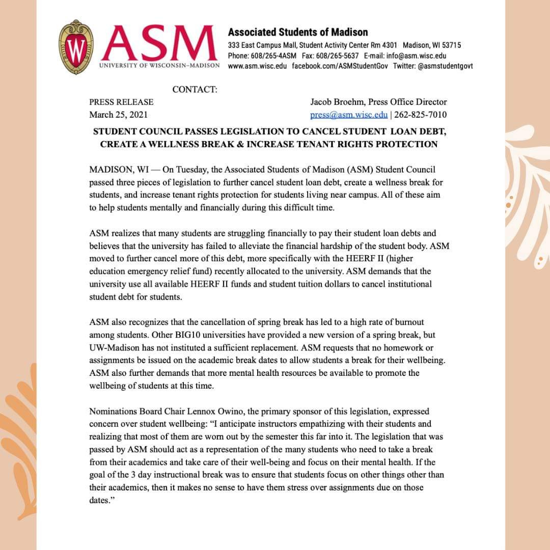 This week, the ASM Student Council passed three pieces of legislation that aid students mentally and financially during this difficult time.