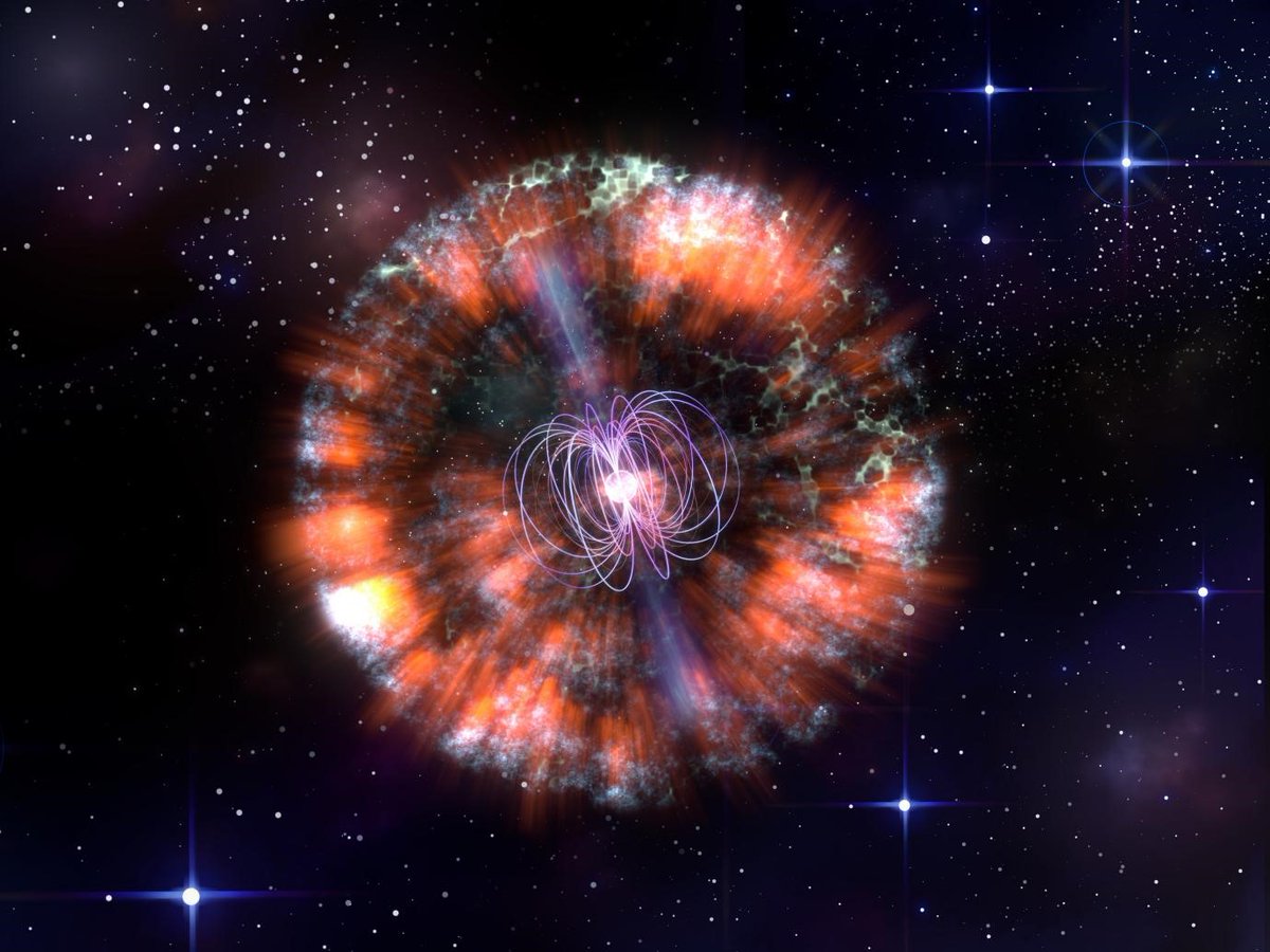 #EuropeanVLBINetwork revealed that a cosmic explosion most likely formed a neutron star with an extremely powerful magnetic field – known as a magnetar. Read more here: http://www.jive.eu/cosmic-cow-explained-radio-signals-point-explosion-and-newborn-magnetar …#PressReleasepic.twitter.com/M1lZWdrWDi