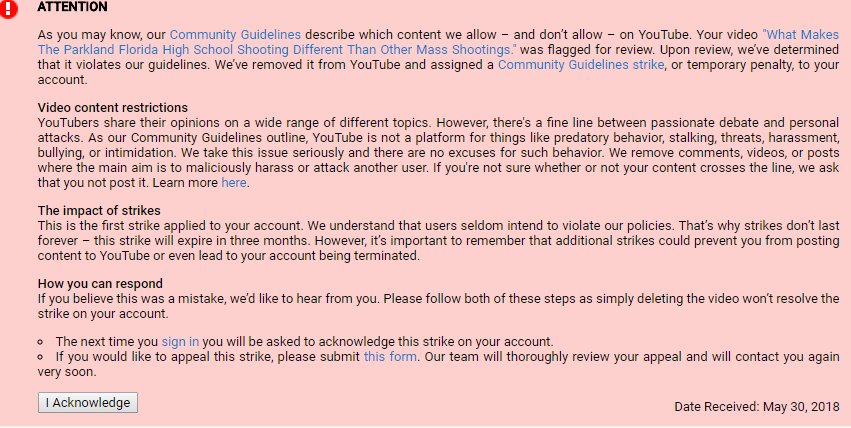 Less then 15 days of being unbanned thent his happens. I've already received a strike for this video. Now here's the second one. For. The. Same. Video. For. The. Same. Reason. @YouTube @TeamYouTube @YTCreators do better. pic.twitter.com/ZxDHnDXvbd