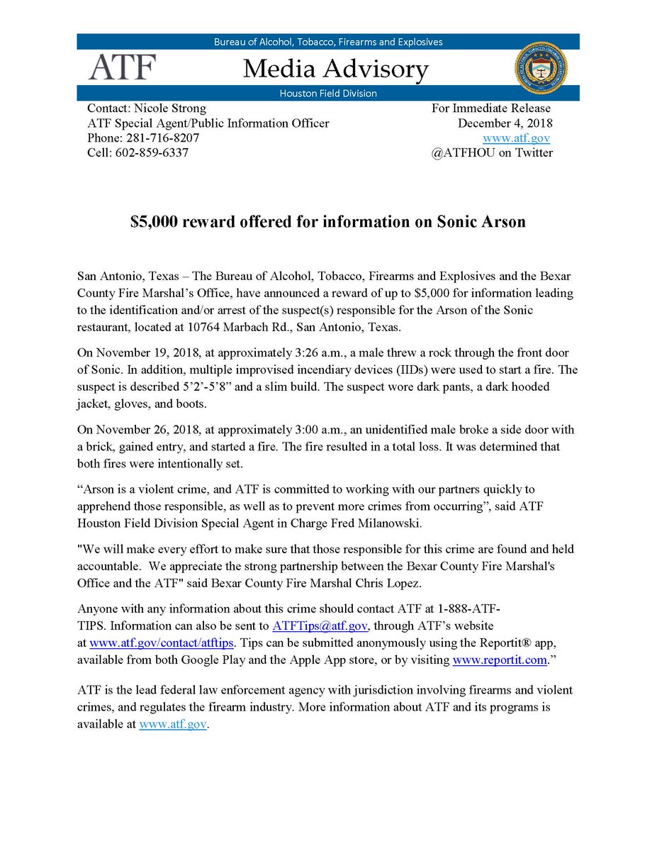 Take another look! Reward for info leading to the two arson fires of the Sonic in San Antonio in November. Call 888-ATf-TIPS with infopic.twitter.com/iioKYJZsPu