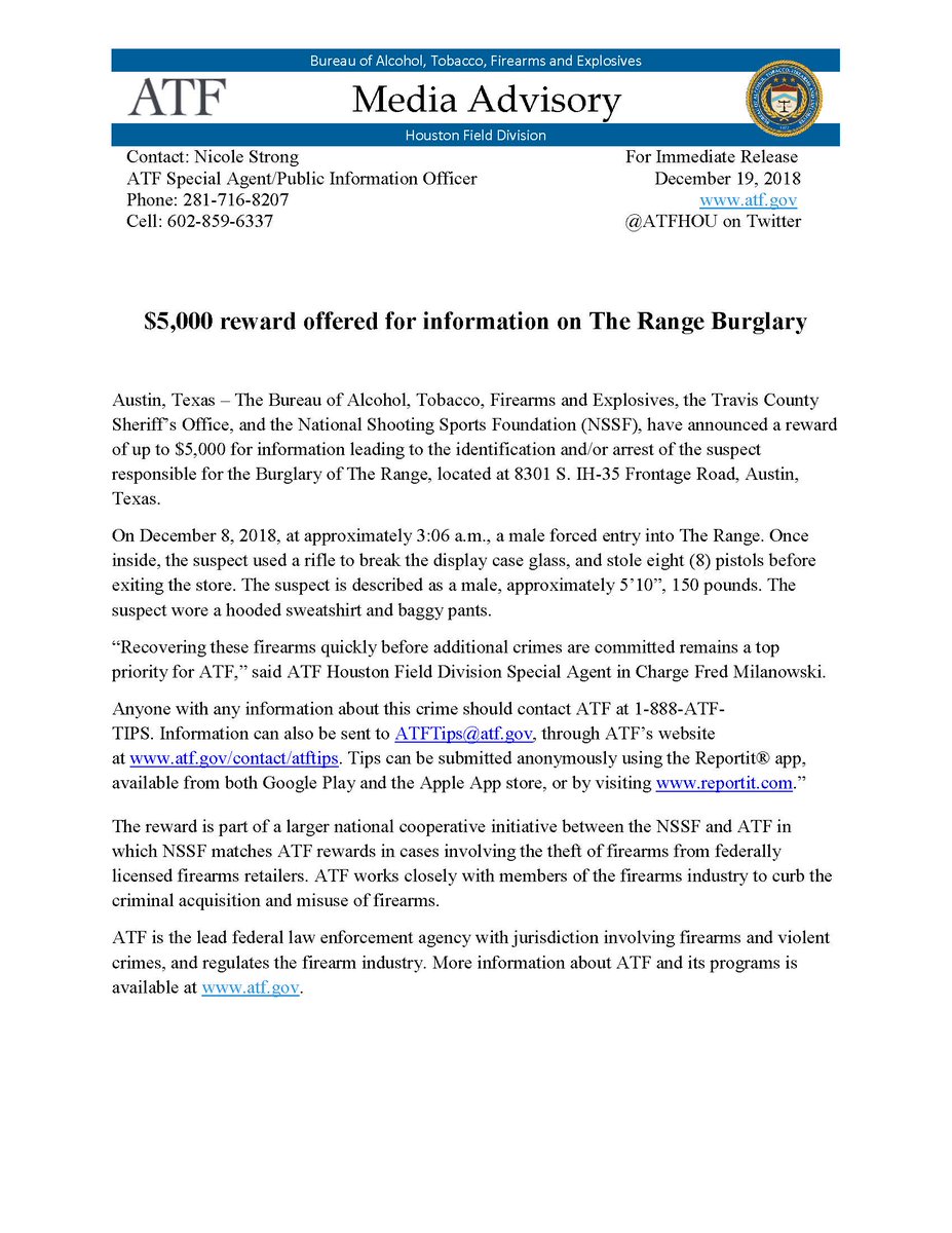 @ATFHou,@TravisCoSheriff, and@NSSF find this Gun Store Thieft and up to $5,000 can be yours. Call 888-ATF-TIPS with info.pic.twitter.com/fqE4Pi8VQZ