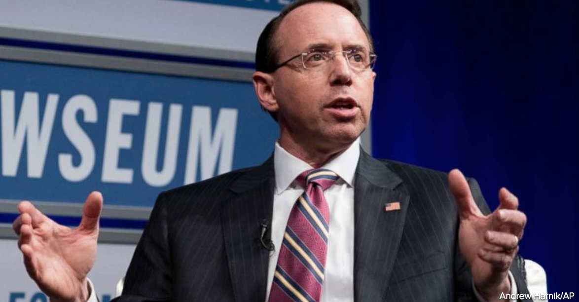 Deputy Attorney General Rod Rosenstein vowed that the Justice Department “is not going to be extorted” by certain critics, and he depicted as cowards a group of Republicans who have drafted articles of impeachment against him. https://abcn.ws/2Kthp0l pic.twitter.com/mUmAElD1mM