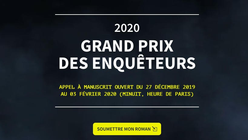 Plus une minute à perdre, faites-nous parvenir votre manuscrit jusqu'au 3 février 2020 via le site http://grandprixdesenqueteurs.com