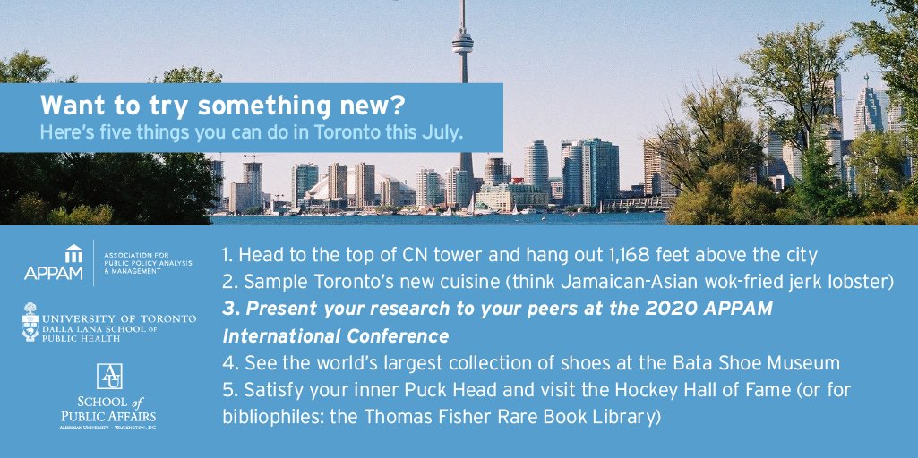 @APPAM_DC 2020 Int'l Research Conf. in Toronto by 11:59 p.m. ET on Monday, Feb. 3 & earn a chance to win 1 of 20 free registrations! Follow our tips to enjoy the city too! Enter: https://bit.ly/37SgzFt pic.twitter.com/WDYmRMkGyl