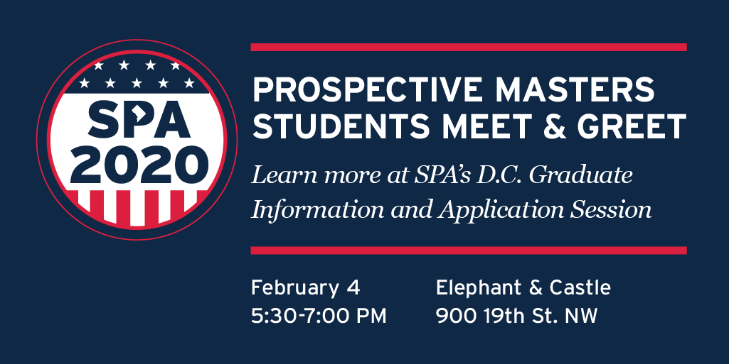 Mark your calendars, prospective Masters students! Join SPA for a complimentary social reception & brief overview of graduate degree programs & application strategies w/ current students & alumni on February 4. Details & RSVP here: https://bit.ly/2Gsrn1o pic.twitter.com/JpdBrgZbDV