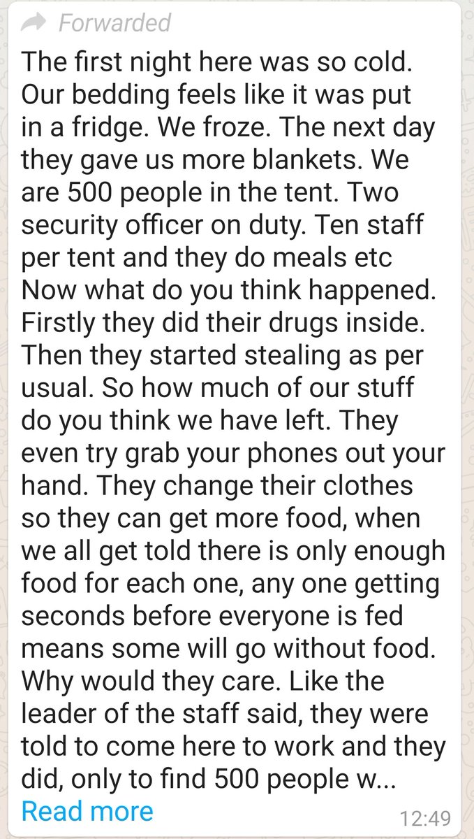 We attach 3 screenshots of a whatsapp message receives from a homeless couple 'living' there. 1.pic.twitter.com/pycIERYvon