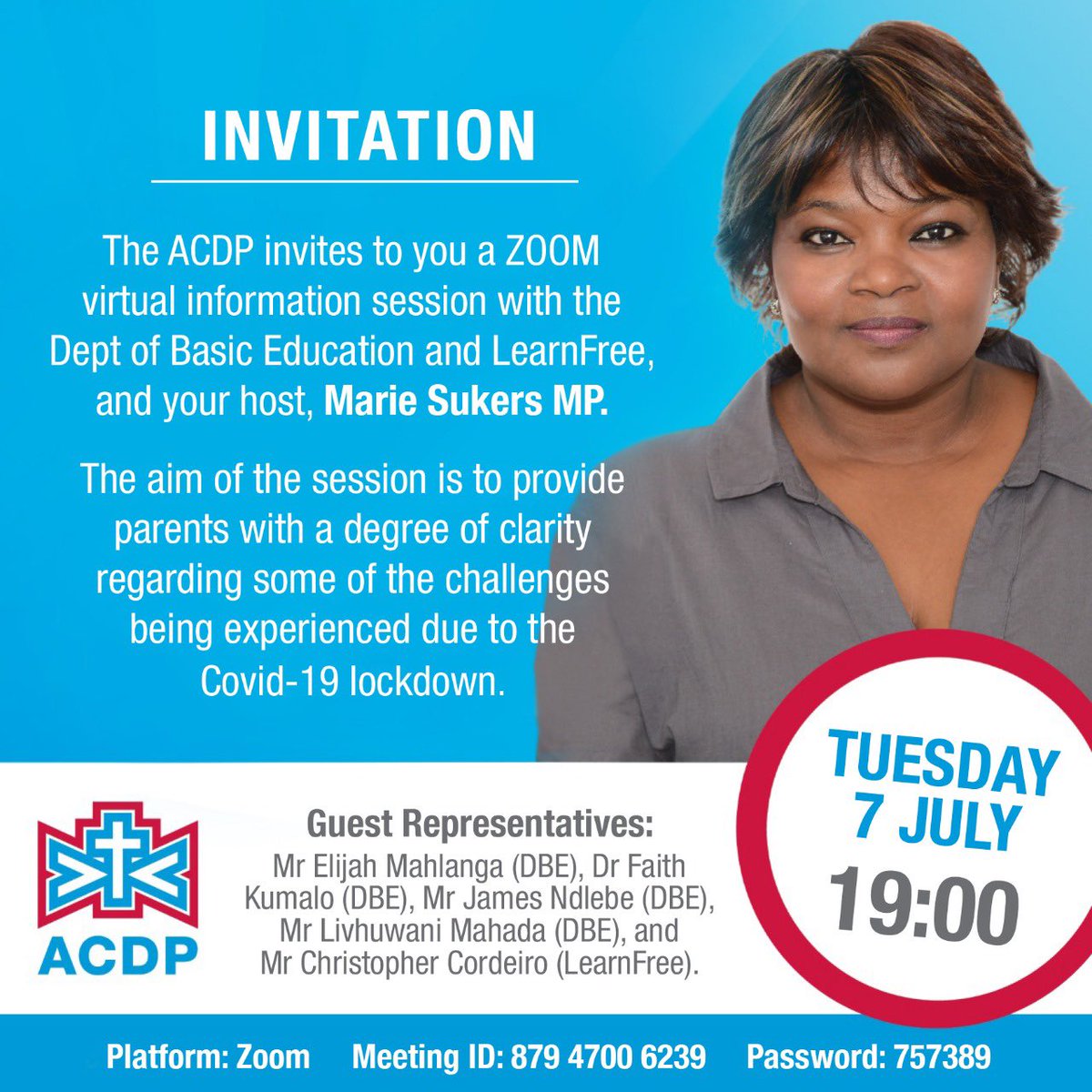 Join us for a Zoom conversation with DBE @DBE_SA officials and LearnFree, hosted by our Marie Sukers .MP Tuesday - 7 July - 7pm "Clarifying challenges in basic education in #COVID19inSA"https://twitter.com/SukersMarie/status/1280199338053025793 …