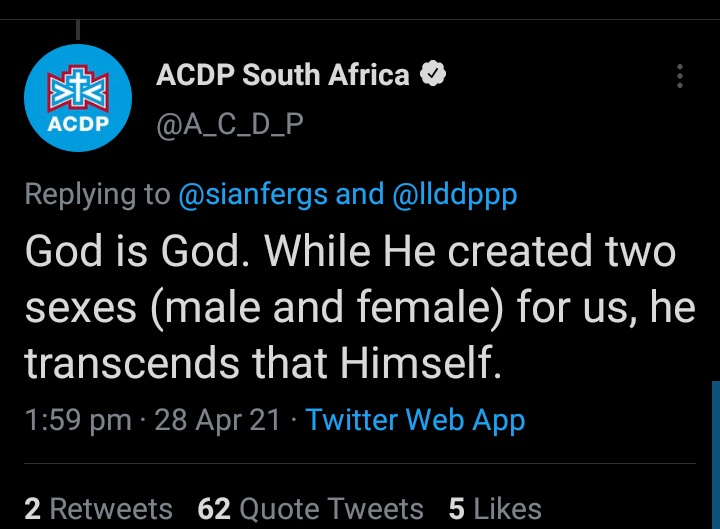 To suggest that God our Heavenly Father is non-binary, is absurd and blasphemous. It's equally absurd to interpret our statement as promoting your views that people can be non-binary, and therefore that God Himself is. He is not non-binary - emphasis on HE.