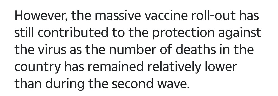 @A_C_D_P "However, the massive vaccine roll-out has still contributed to the protection against the virus as the number of deaths in the country has remained relatively lower than during the second wave." What is a vaccine? Did you at least read the article? -