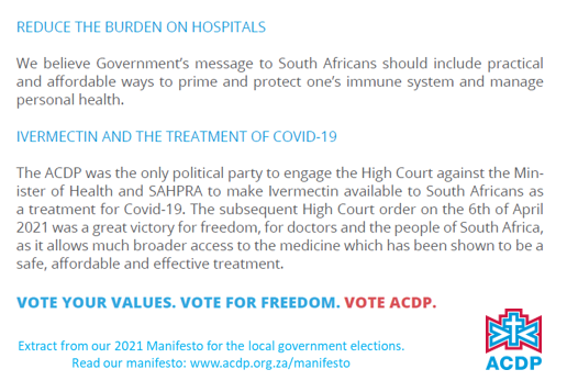 Alternatives to Covid vaccines! This is what we say about it in our 2021 Manifesto. #VoteforLiberty Read our full manifesto https://acdp.org.za/manifesto/ pic.twitter.com/1oxpHpHzWe