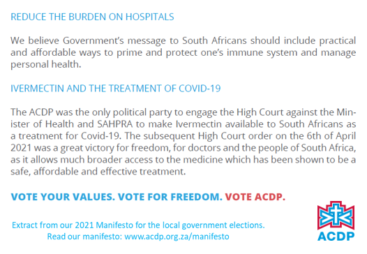 African Christian Democratic Party ● Modern, Conservative, Christian ● Full statements on Website & FB ● Manifestos & Constitution on website● info@acdp.org.za.