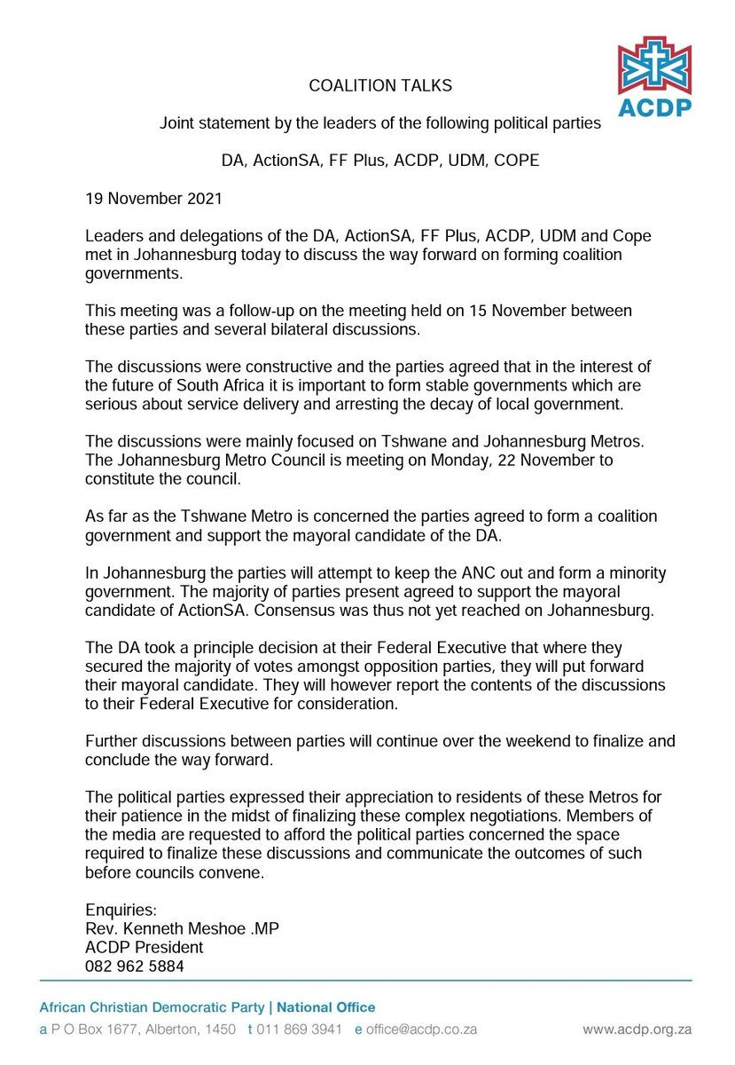 Takes maturity & putting people 1st 2 acknowledge dat @HermanMashaba mayoralty will b d best move forward 2 fix CoJ. @Our_DA, d expected success of a @HermanMashaba led coalition govt will not de-campaign yo party or any of coalition partners ahead of 2024; on d contrary...