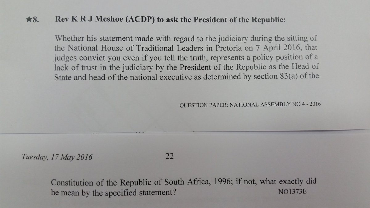 ACDP President Kenneth Meshoe asks President Zuma this question today.pic.twitter.com/FwmYhgkt89