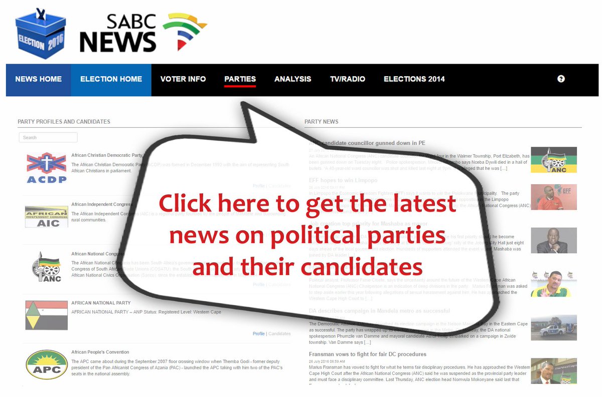 Want to know what your party has been up to? The #SABCElections site has updated news http://owl.li/3Dms302GqcK pic.twitter.com/zTHJjBa1wy