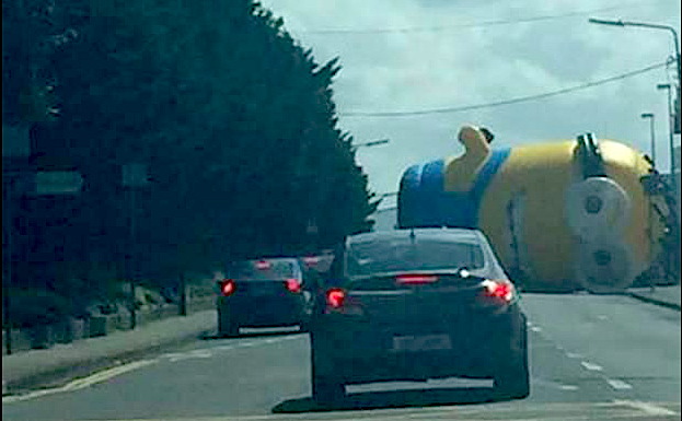 🇬🇧 Giant Minion causes chaos on Irish road (Irish Mirror) Minion géant gonflable renversé par le vent sur une route pic.twitter.com/tVlrcv8nER