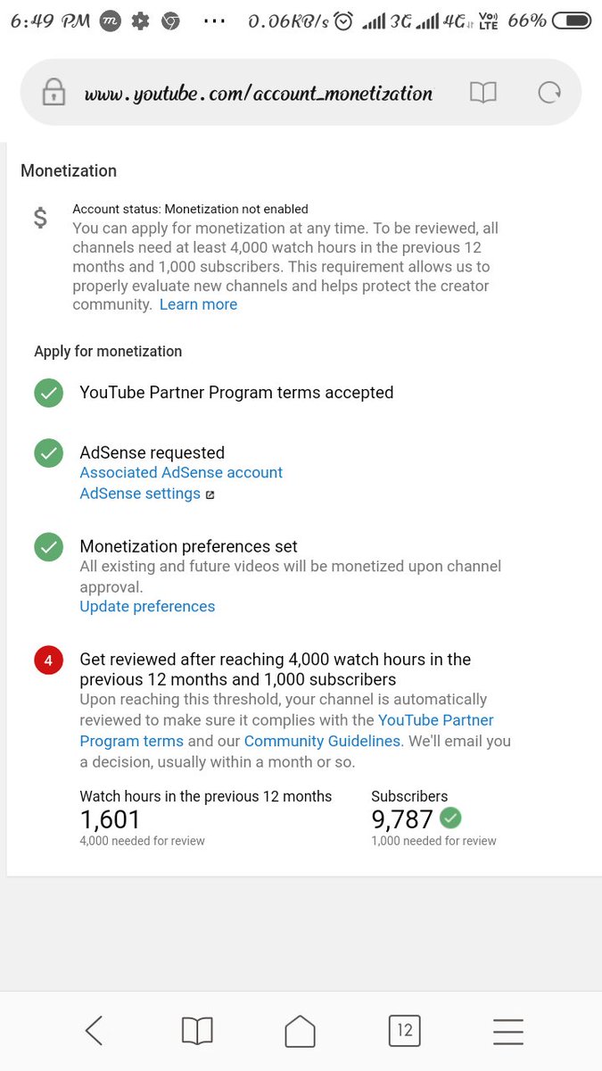 @TeamYouTube Please solve my query my monetisation is not enabled and watch hours is not correct. Please find is screen shorts in monetisation setting 1602 watch hr but analytics watch hours is 15,731.please enable my monetisation.pic.twitter.com/tsg7io4VLS