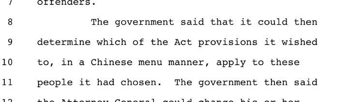 #ChineseMenuGate from yesterday's oral argument in Gundy v. United States. (1) During oral argument, Justice Gorsuch asked a question about the gov't's power to apply a sex offender law in various ways. The relevant portion is below.pic.twitter.com/FP22Yh2XRz