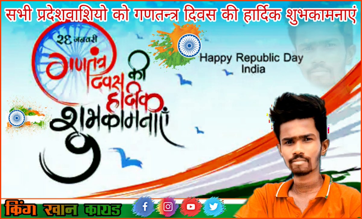सभी भारतवासियों को *गणतंत्र दिवस* की हार्दिक शुभकामनाएं, मेरी दुआ है न लगे मेरे देश को किसी की नज़र, महकता रहे यूं ही फूलों की तरह हर पल जय हिन्द! HAPPY