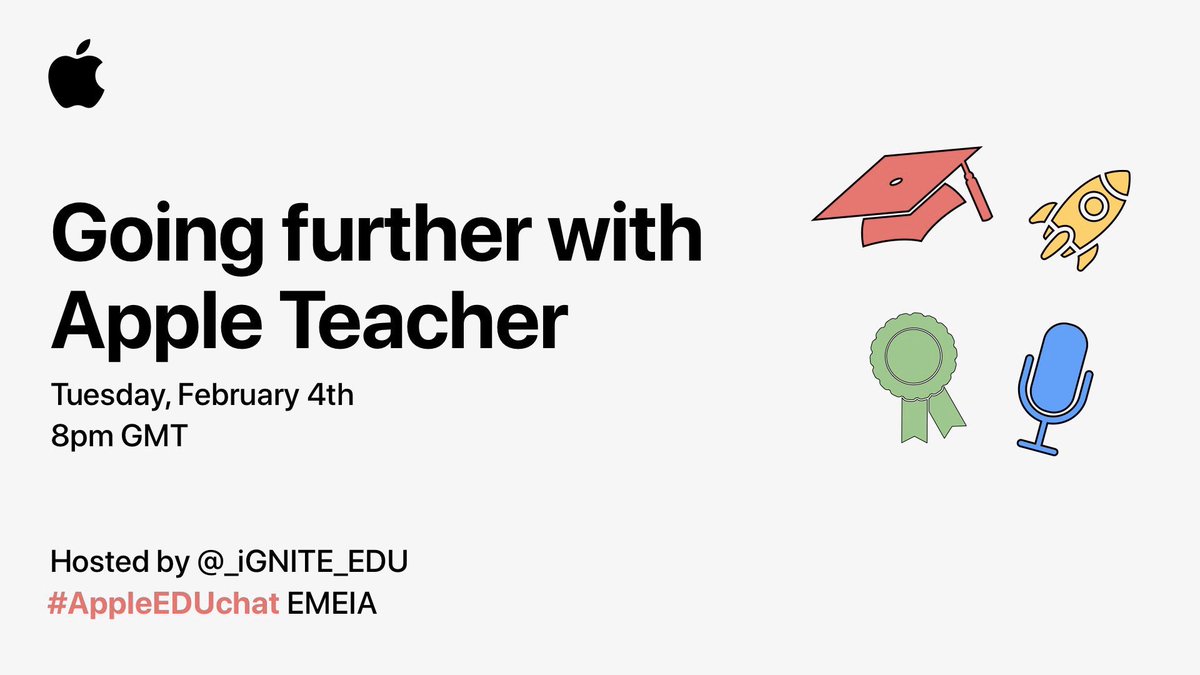 @_iGNITE_EDU team tonight at 20:00 GMT for a deep dive on all things Apple Teacher#AppleEDUchat@kmi_edupic.twitter.com/zIJ0QJUBsE