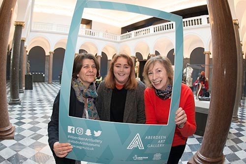 Aberdeen's revamped Art Gallery welcomes its 100000th visitor in less than 100 days! 20-year-old student Ceilidh Jeffrey (centre) was the milestone visitor http://socsi.in/OvuYW pic.twitter.com/hKDmtPDf04
