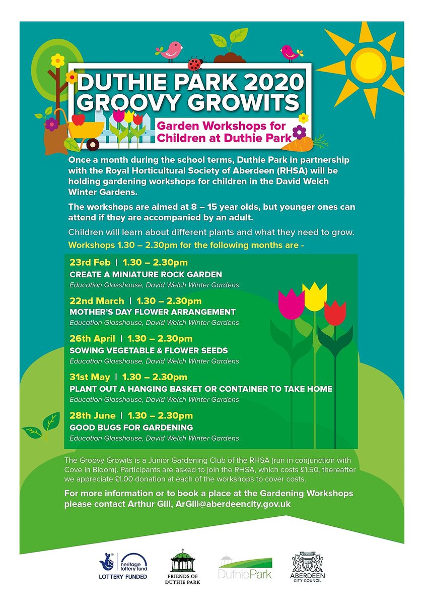 We are once again holding gardening workshops for children aged 8 – 15 at Duthie Park in partnership with Royal Horticultural Society of Aberdeen.pic.twitter.com/aZmovZ2jQ9