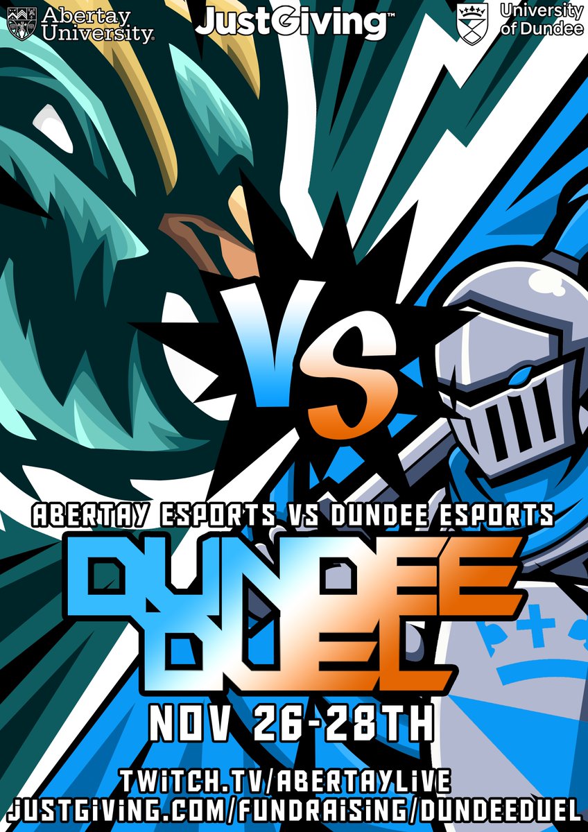 Abertay University Students' Association (@AbertaySA) ESport society (@AbertayES) are taking on@DundeeEsports in a#DundeeDuel to raise money for Dundee's Women's rape and sexual abuse centre from November 26-28th