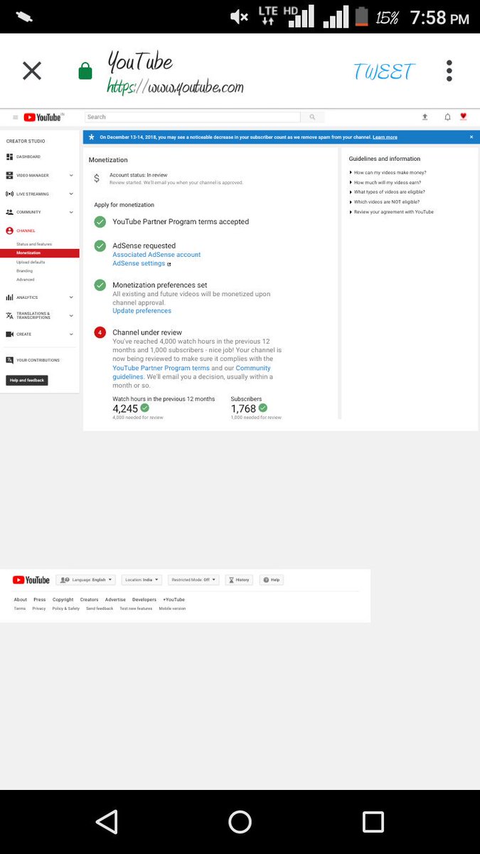 I have successfully reached to 1k subscribers and 4k watch time. But my monetization has not done.