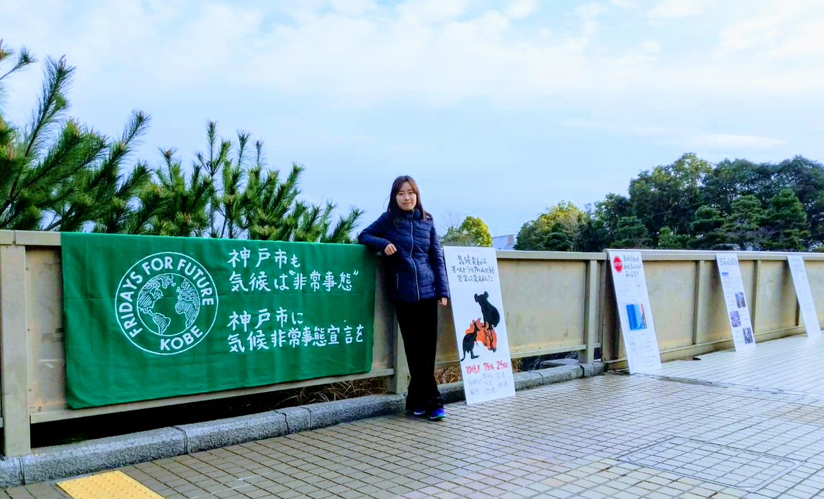 本日は神戸大学のキャンパスにて新しいバナーと共に2時間半立っていました。学生たちに #気候非常事態 という言葉を知ってもらう、こうやって危機感を持っている仲間が近くにいると認識してもらうことをゴールにしました
