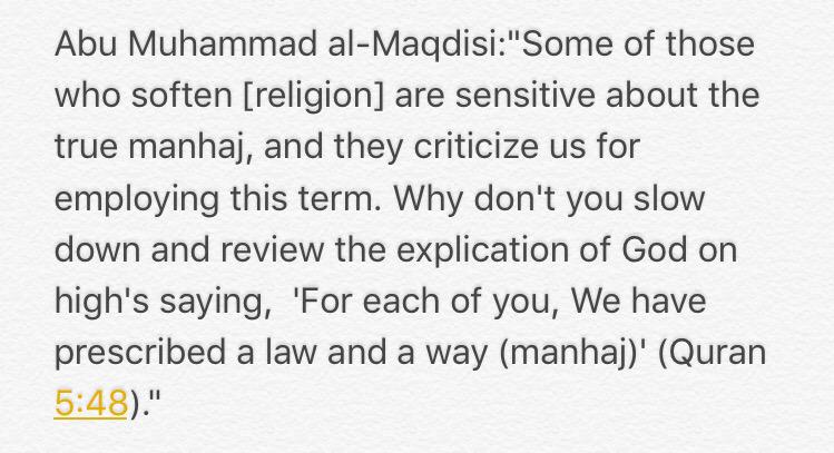 Al-Maqdisi pushes back on critics of his use of "the true manhaj" and, related, limited conception of the righteous.pic.twitter.com/SDHHo4l9zk
