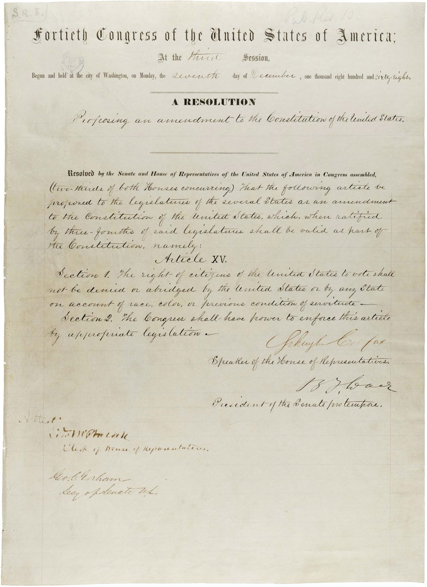 #OTD in 1870 15th Amendment was ratified & guaranteed a citizen's right to vote regardless of "race, color, or previous condition of servitude." Sadly, discriminatory practices(intimidation, poll taxes, literacy tests) were continuously used to prevent Black residents from votingpic.twitter.com/6BsoavXfLm