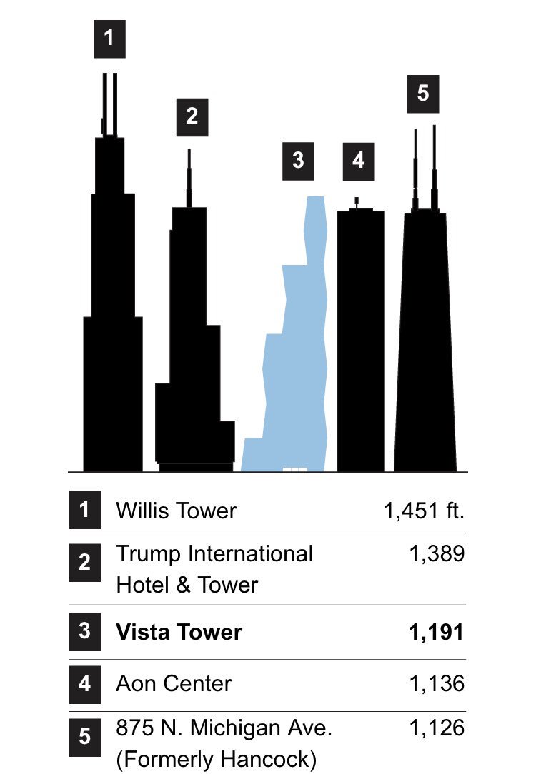 Çinli yatırımcı ortakla 2020’de tamamlanacak, 101 katla Şikago’nun üçüncü en yüksek binası olacak Vista Tower inşaatında tepe noktaya ulaşıldı. Şikago’nun en merkezi konumundaki 1 milyar dolarlık projede daireler 840 bin ila 18.5 milyon dolar arasında. https://www.chicagotribune.com/business/ct-biz-viz-vista-tower-topping-off-ryan-ori-htmlstory.html …pic.twitter.com/R58wcFdelH