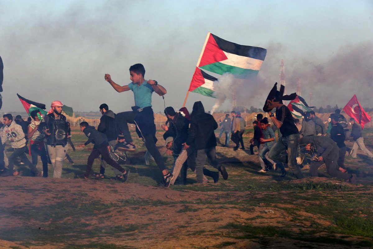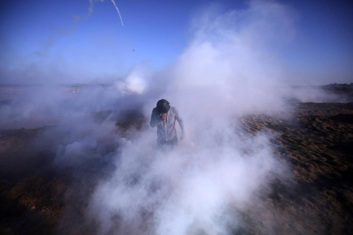 #GreatReturnMarch protests as Israeli soldiers shoot tear gas and live ammunition at them from the other side#FreeGazapic.twitter.com/UMTBM4EAfC