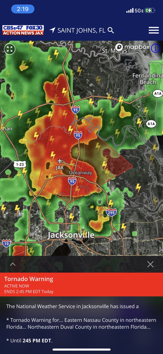 Tornado warning for Duval, Nassau until 5/15 2:15PM