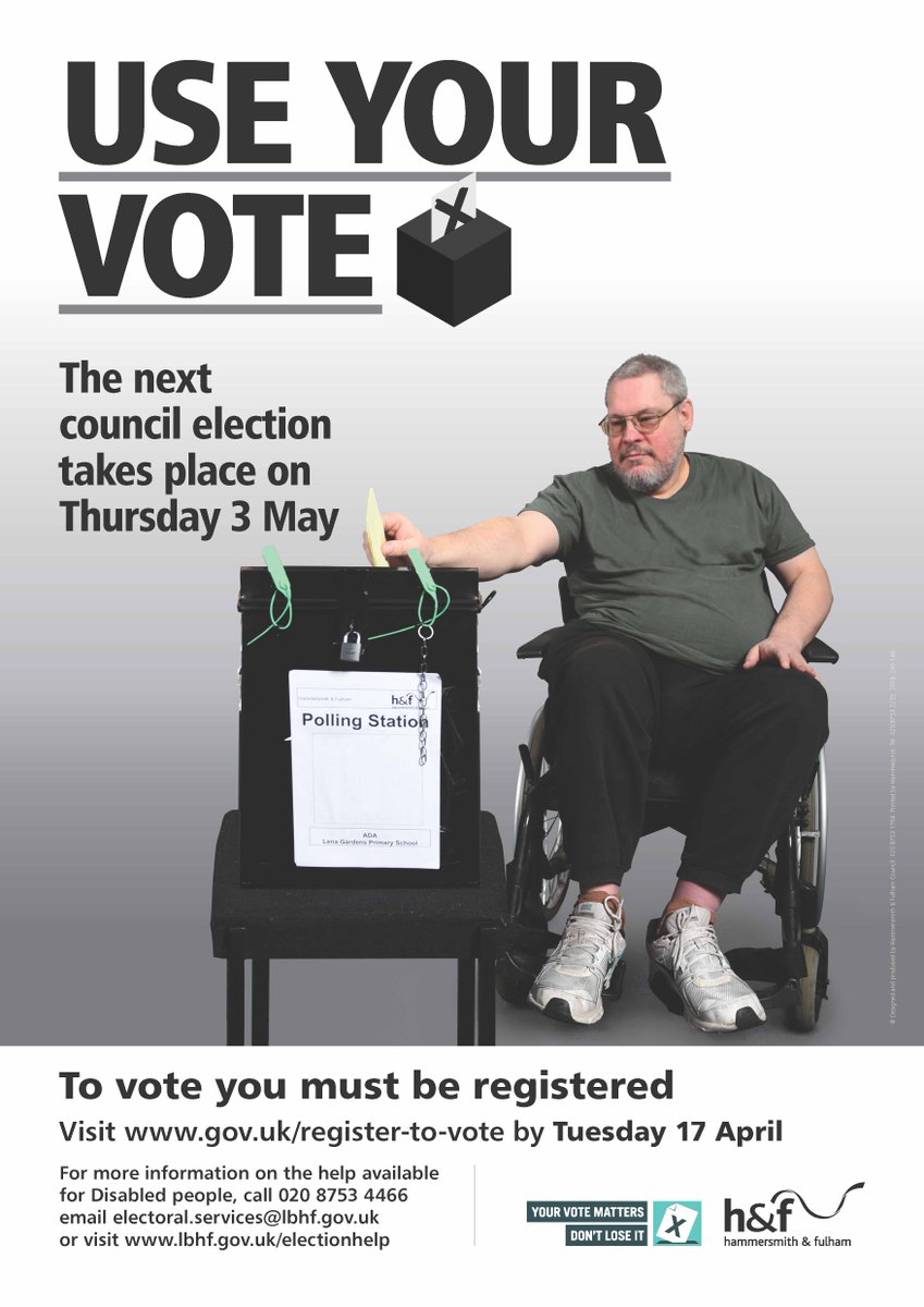 @LBHF Electoral Services to#coproduce this poster and other info, with@ActiononD@HeadsUpMHNetwrk#SafetyNetPeopleFirst. Calling Disabled Residents - it's vital that we#UseOurVote on May 3rd! Spread the word!@InclusionLondon@ROFAcampaignhttps://twitter.com/LBHF/status/977154626679201793 …