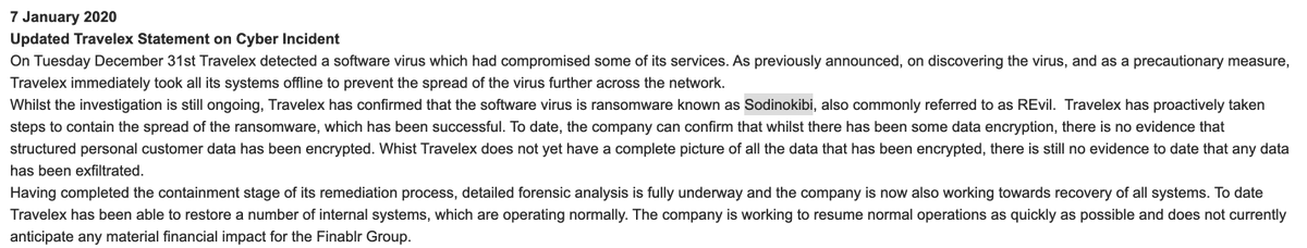 Travelex confirms it was hit by Sodinokibi (AKA REvil) ransomware. No ETA for resumption of normal service as yet...pic.twitter.com/jKK9Zgz4Ag