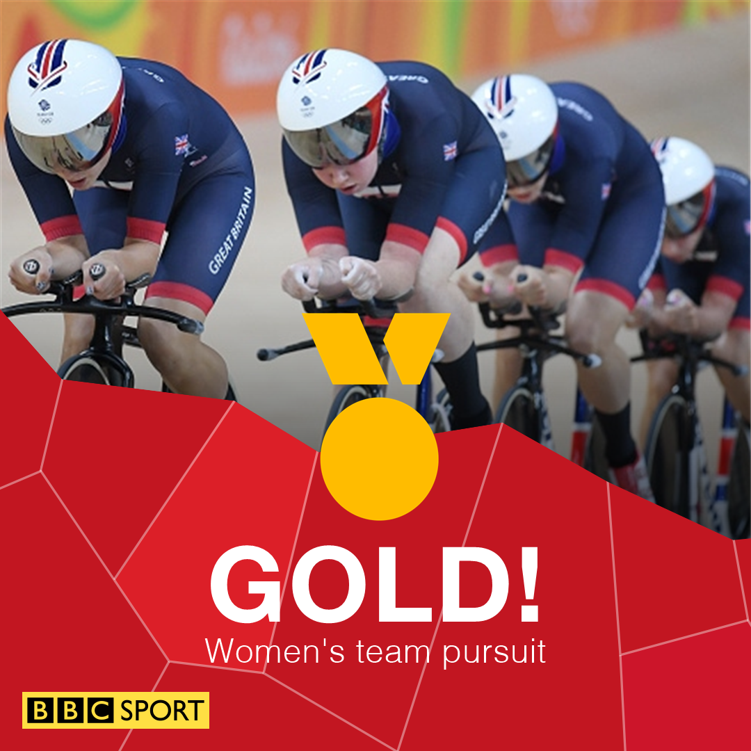It's another gold for GB! They win the women's team pursuit and defend their Olympic title http://bbc.in/2boQSQW pic.twitter.com/1dxIvbri2Q