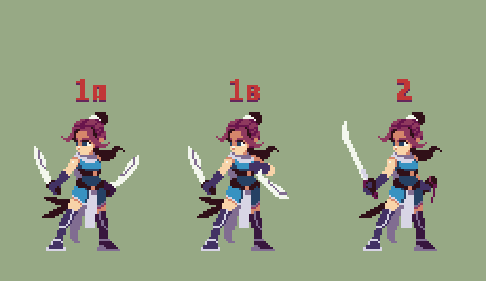 I'm making some designs for an animation test/prototype. Can't decide if I prefer double daggers (Blade up or blade down) or sword! What do you guys think? Poll in replies!pic.twitter.com/P4BXltwyem